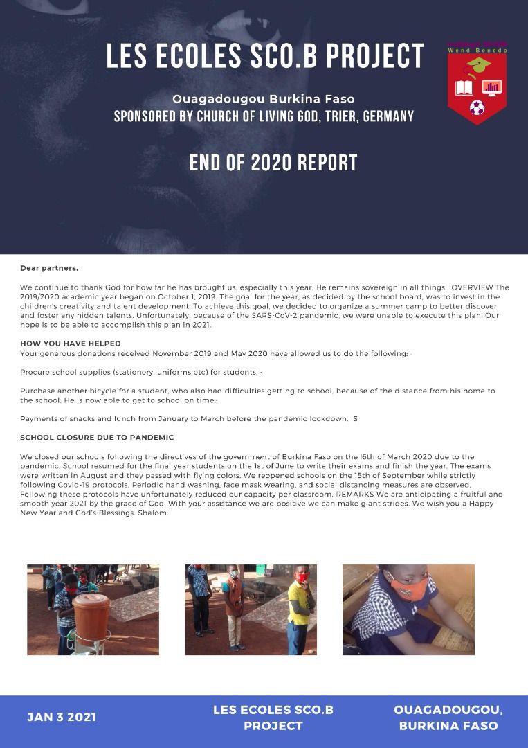 Aufgrund der politischen Instabilität und dem zunehmenden Einfluss von Terror in Burkina konnten den Lehrern ab Januar 2018 bis März 2018 keine Gehälter gezahlt werden. Wir haben die Zahlung der Lehrergehälter unterstützt.